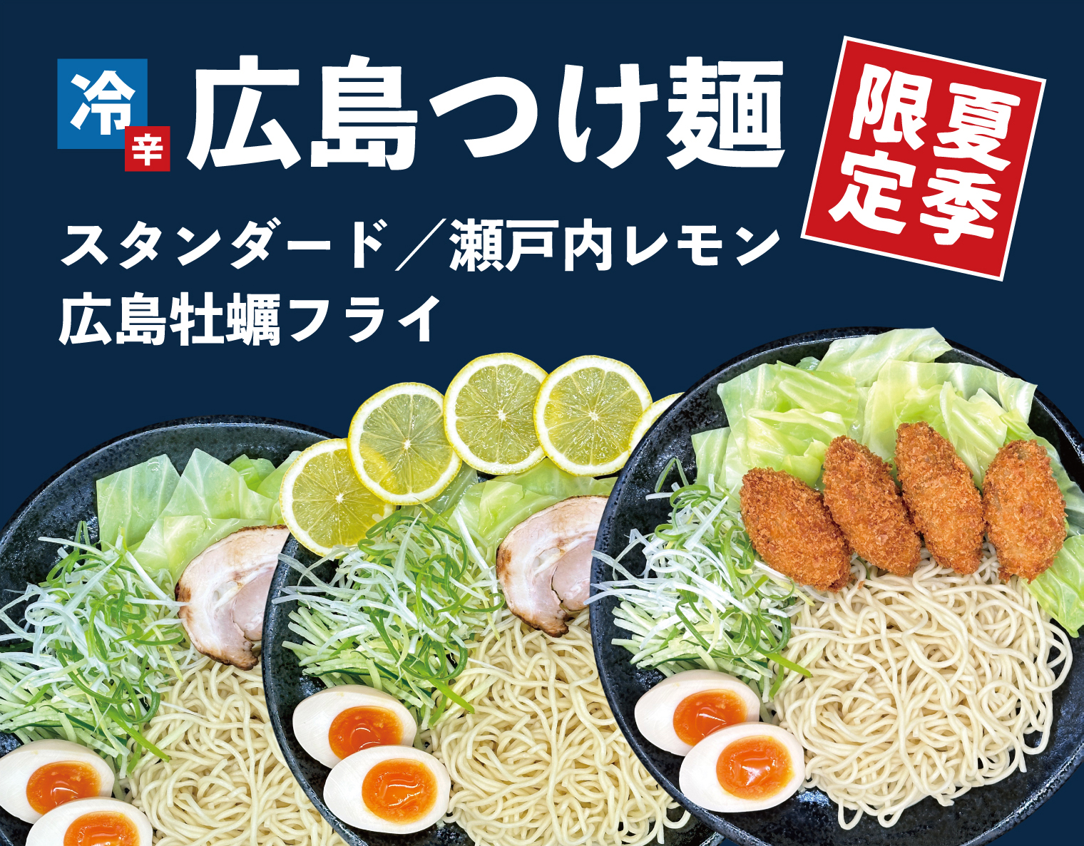 - 冬季限定メニューの牡蠣ラーメンを休止し、夏季限定メニューの広島つけ麺に切り替わりました。