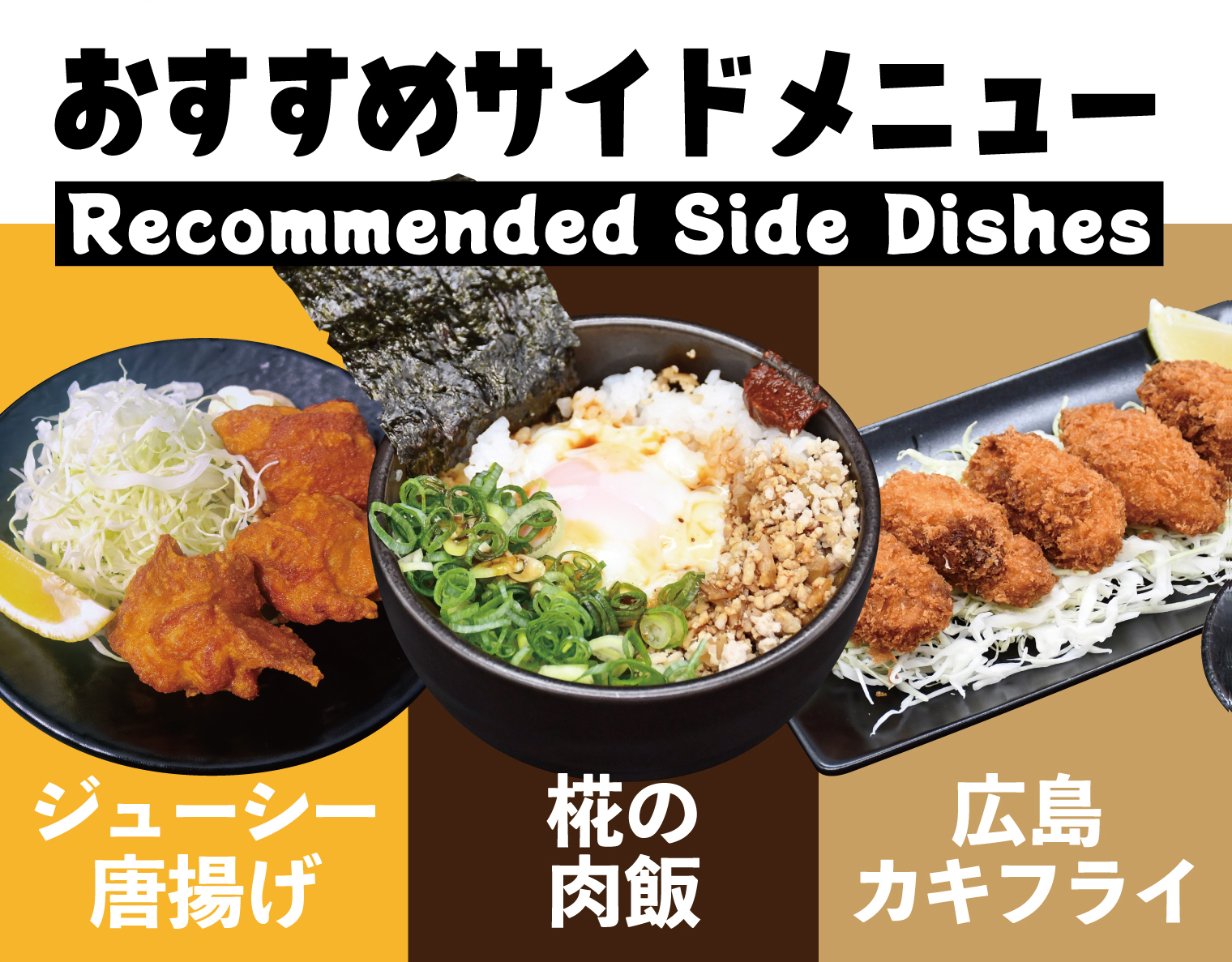 コク旨のしょうゆ豚骨スープを使った昔ながらの広島ラーメン(中華そば)を中心に、 広島のご当地麺でもある広島つけ麺や汁無し担々麺をご用意しております。さらに2025年7月11日のラーメンの日に「広島牡蠣ラーメン」が新たにご当地ラーメンとして認定!広島名物の麺類を存分にご堪能ください。